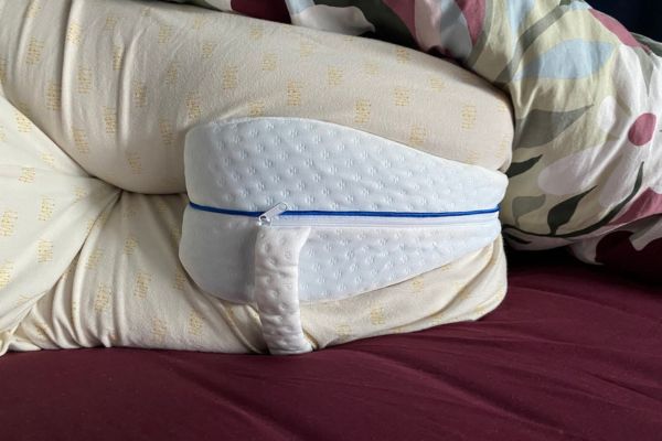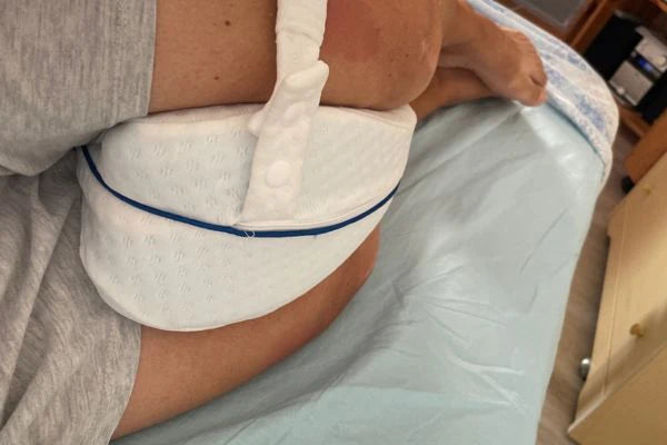 Poduszka między kolana KomfiKnees® pomaga zmniejszyć ból podczas snu.